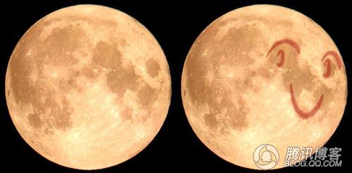 “仔细看看,月球还真是有一张笑着的人脸”——来源:腾讯