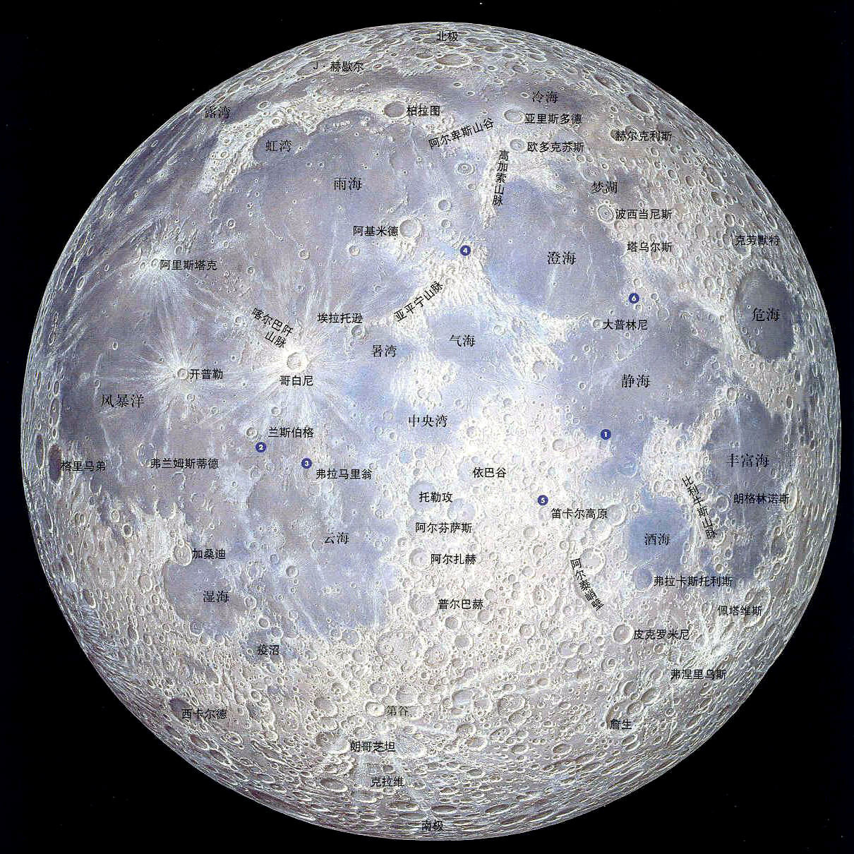 月球正面地图: