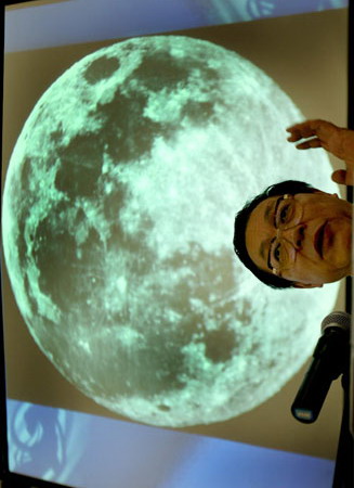 换一个角度(把传统的月球图片逆时针旋转90度)看,月球向地球人所展示的就不是以往人们所认为的一张笑脸,而像是对人类不珍惜地球环境所表示出来的不安和惊恐,或者是对有朝一日会毁灭人类的核灾难在发出怒吼和警告。 |