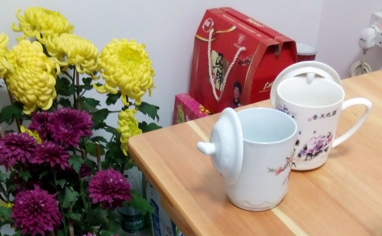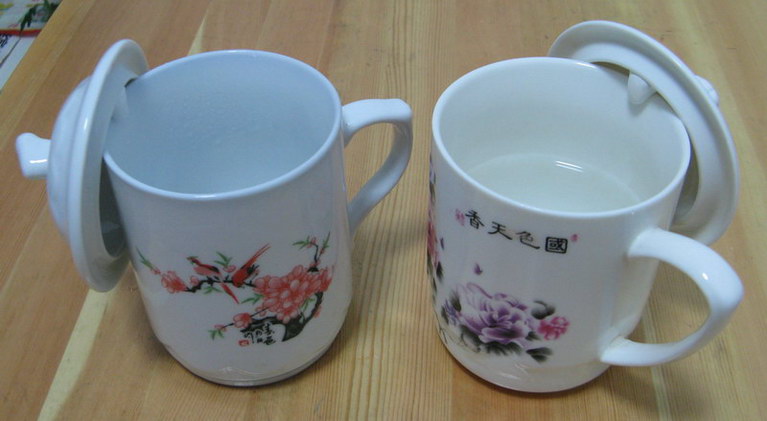 ↑现有杯子↑ 杯盖直接放在桌面上很不卫生