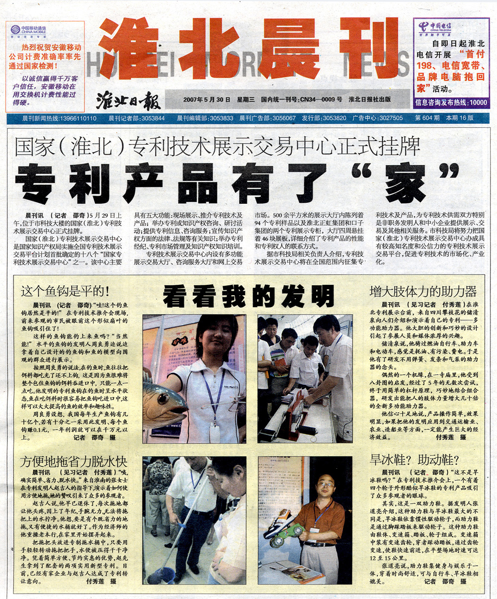 《淮北晨刊》2007年5月30日头版报道、本文 |