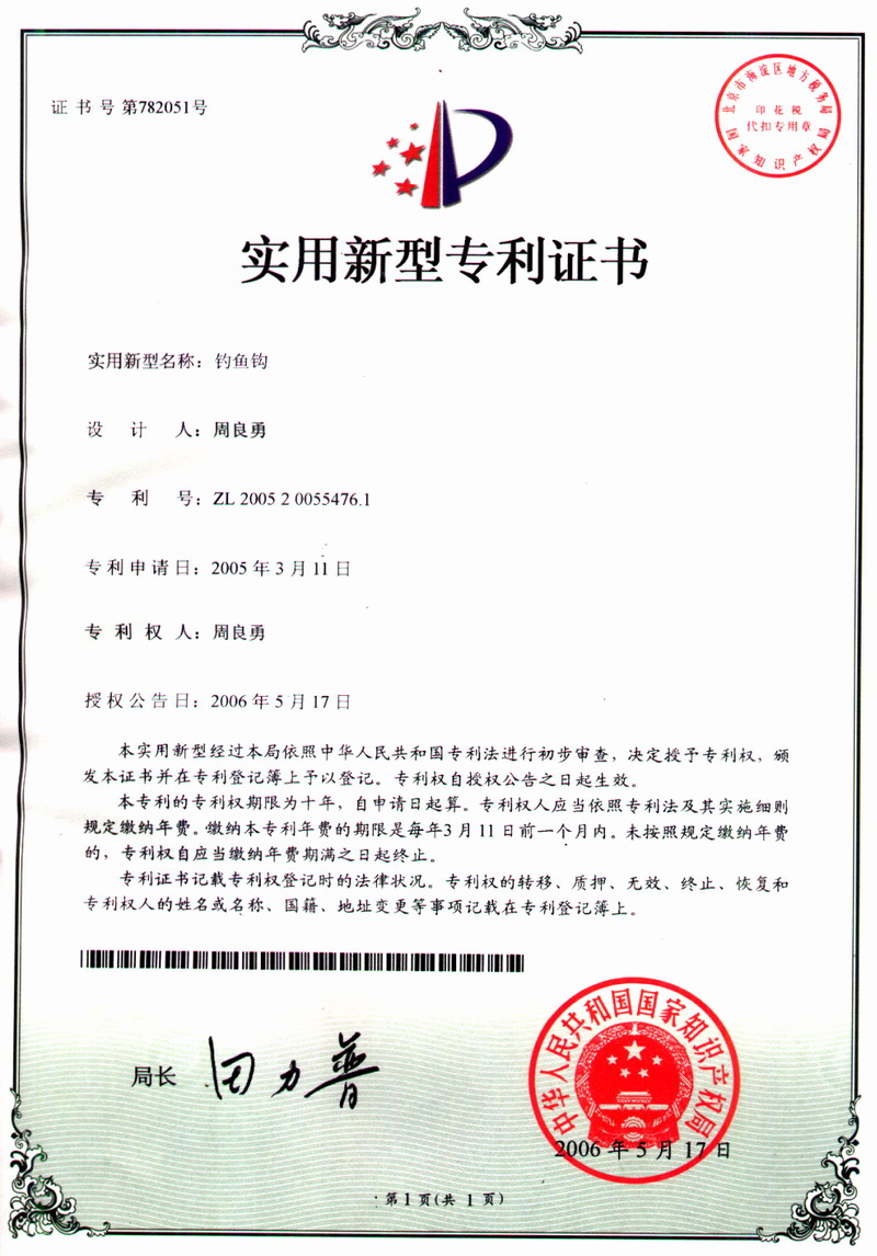 按照周良勇说法,在钓鱼时,鱼往往把饵料都吃光了还不上钩,这是因为鱼很难将整个包住鱼钩的饵料吞进口中,只能一点一点吃。他发明的专利鱼钩在钓鱼时呈水平状态,鱼在吃饵料时很容易就会把鱼钩吃进口中,这样可以大大提高钓鱼的效率和趣味性。