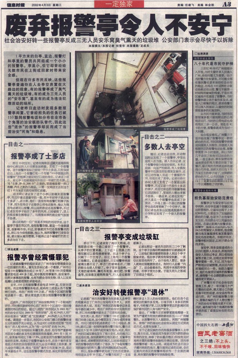 《信息时报》对废弃报警亭的专题报道:报纸原版图片中图 大图